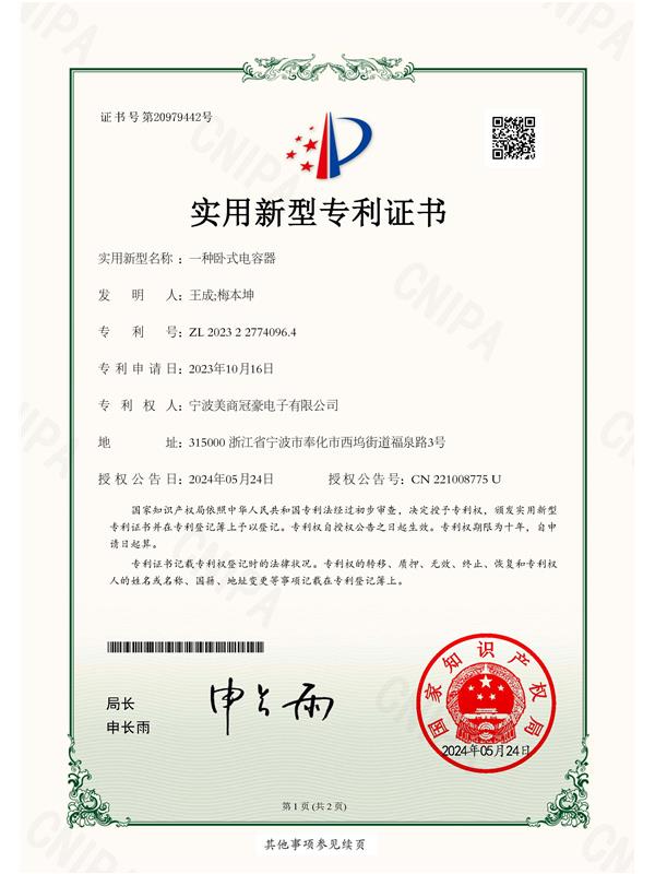 • 實(shí)用型專(zhuān)利證書(shū)
